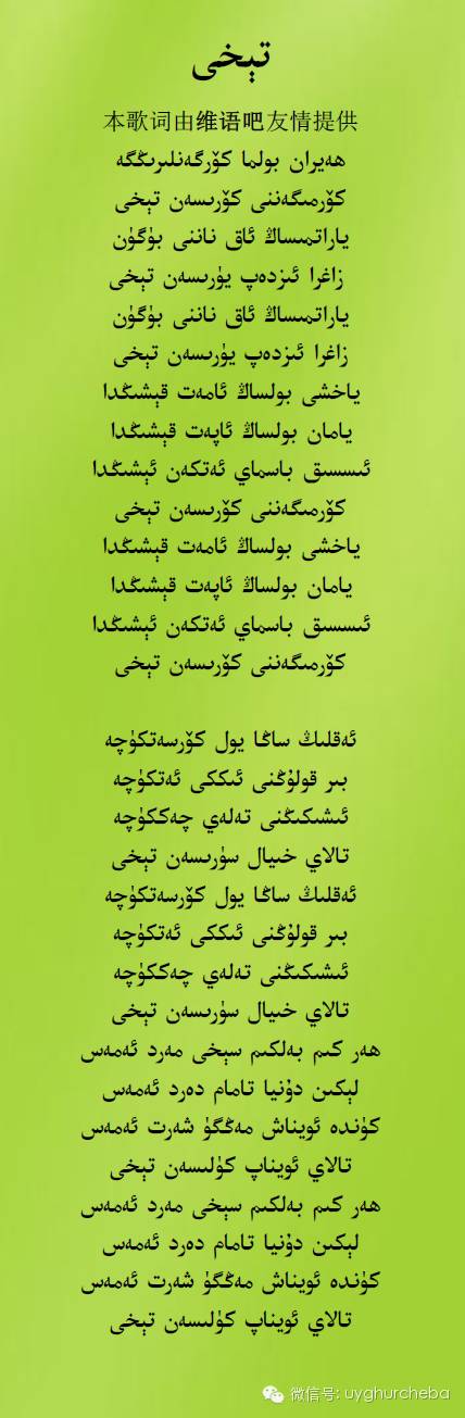 如果您想下载这首歌曲的MP3,请点击本页下方的“阅读原文”,进入音乐网站在线试听下载,这里仅提供维吾尔语版的下载。