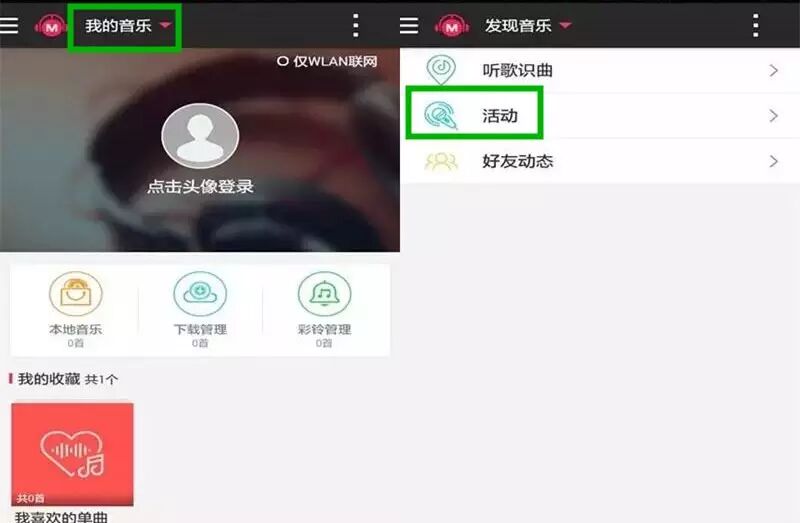 2. 打开咪咕音乐,点击“我的音乐” -> 发现音乐 -> 活动,然后出现的页面里,第一个活动即可领取流量。