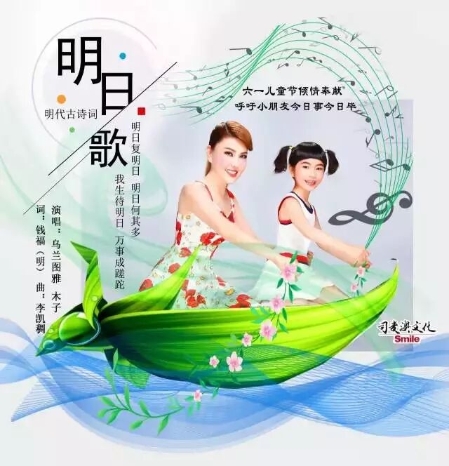 今日,这首积极向上、极具教育意义的古代诗歌,被著名音乐人李凯稠重新挖掘,对它进行再次创作,著名蒙古族歌唱家乌兰图雅和小童星木子合作演绎,深情吟唱,赋予了《明日歌》这种诗词作品以崭新的历史意义,用文学与音乐相结合的文化艺术形式,将诗词的音乐性进一步升华,进一步延展,让人们在轻松的歌曲声中懂得了深刻的人生哲理。