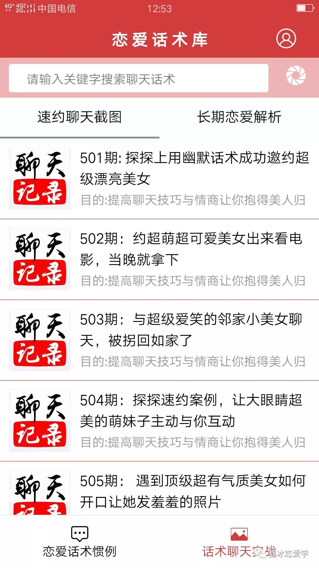 这是一款经典的"追女生代聊APP",恋爱泡妞撩妹神器!!拥有成千上万的可搜索话术,套路惯例与聊天模板,永久更新。