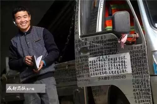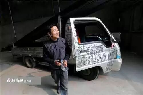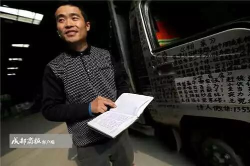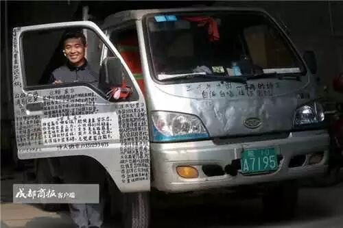 2014年,买了货车跑运输的何先伟突发奇想,把自己创作的数十首歌词写到了银色的车身上,开着它满城晃,有人觉得怪,也有人竖起大拇指夸他有才,这些何先伟都不是特别在意,只是觉得,自己做这件事的时候,很开心。