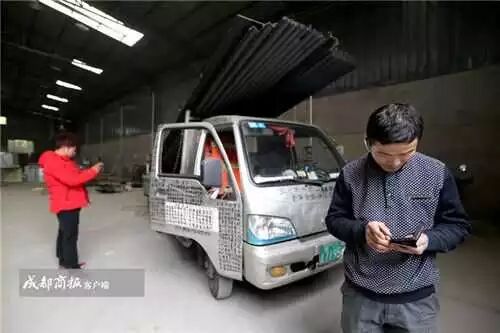 每天上午8点多,何先伟开着写满歌词的货车,前往量力钢材城等生意。钢材城的人都知道,何先伟有一辆车身写满了歌词的货车,因为好辨认,偶尔还指定要找何先伟送货。