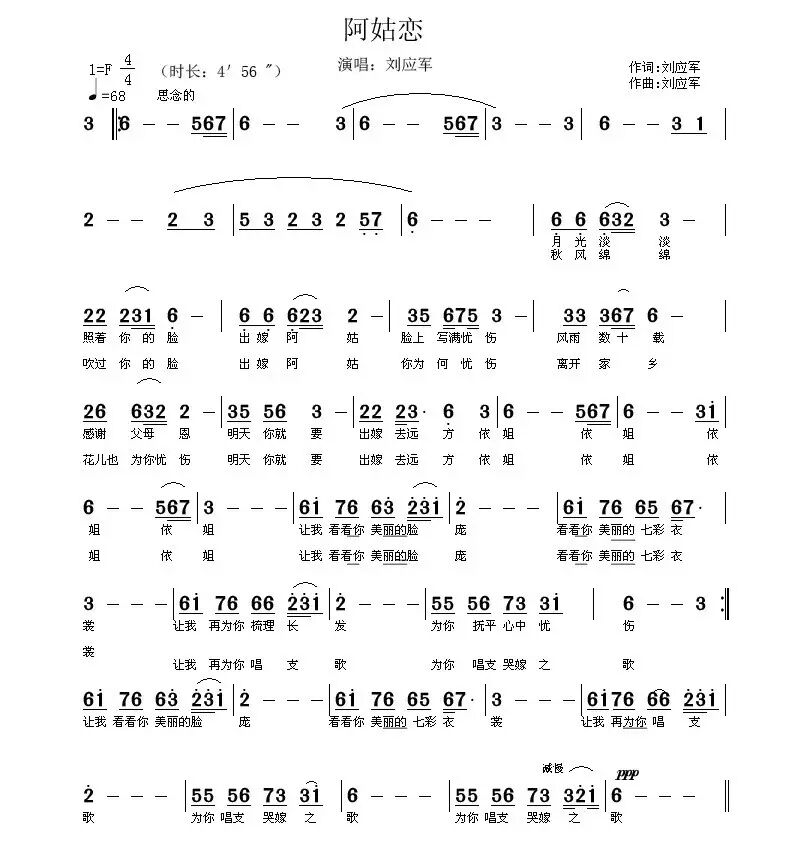 作品《阿姑恋》,创作于2011年,时长4分56秒。作品以土族原生态的婚礼中的哭嫁作为创作素材,采用现代手法结合而成,曲调优美动听,展现了土族阿姑的柔美和依恋。