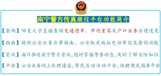 【南宁警方传真】是南宁市公安局官方认证的微信公众平台,查阅本文底部简介,了解平台功能。
