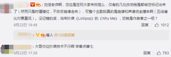 扒叔叔好歹是90后好吗!徐良我们很熟好吗!这首歌只听前缀就知道肯定抄袭人家的歌了,但是刘佳不承认,还说自己闲的无聊,拿出了音乐的对比图。