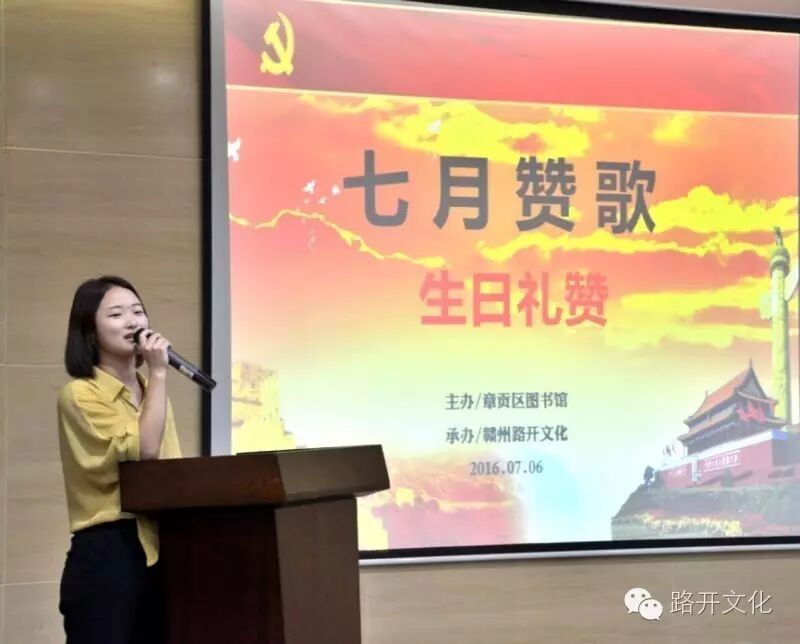 7月6日晚,由章贡区图书馆主办、赣州市路开文化创意有限公司承办的公益文化活动「安静时间」栏目,举办"七月赞歌•生日礼赞"主题专场 ,现场朗诵周南「我是员,我没有忘纪」、湖北诗人周春泉「祖国」、赣州本土诗人邱克明「永远的怀念」等诗作。