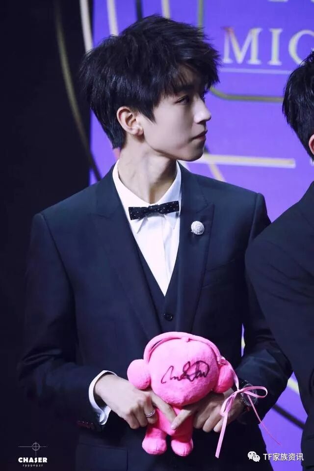 [cp]#第十一届音乐盛典咪咕汇#王俊凯身着西装领结戴着优雅手表戒指的贵公子手里却拿着玩偶 贵气与可爱的完美结合