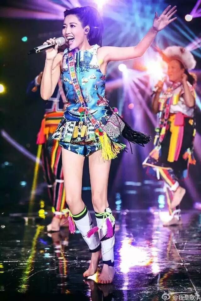 立白我是歌手3,天生歌姬黄丽玲,现场秀民族风印花连体裤