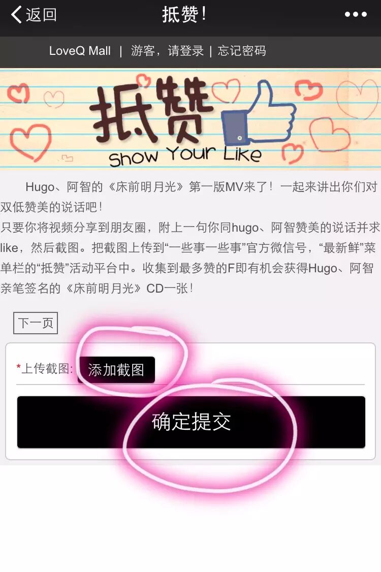 进入活动页面后,按“添加截图”,上传集Like的朋友圈截图,最后按“确定提交”,就能将你集Like的朋友圈截图上传。