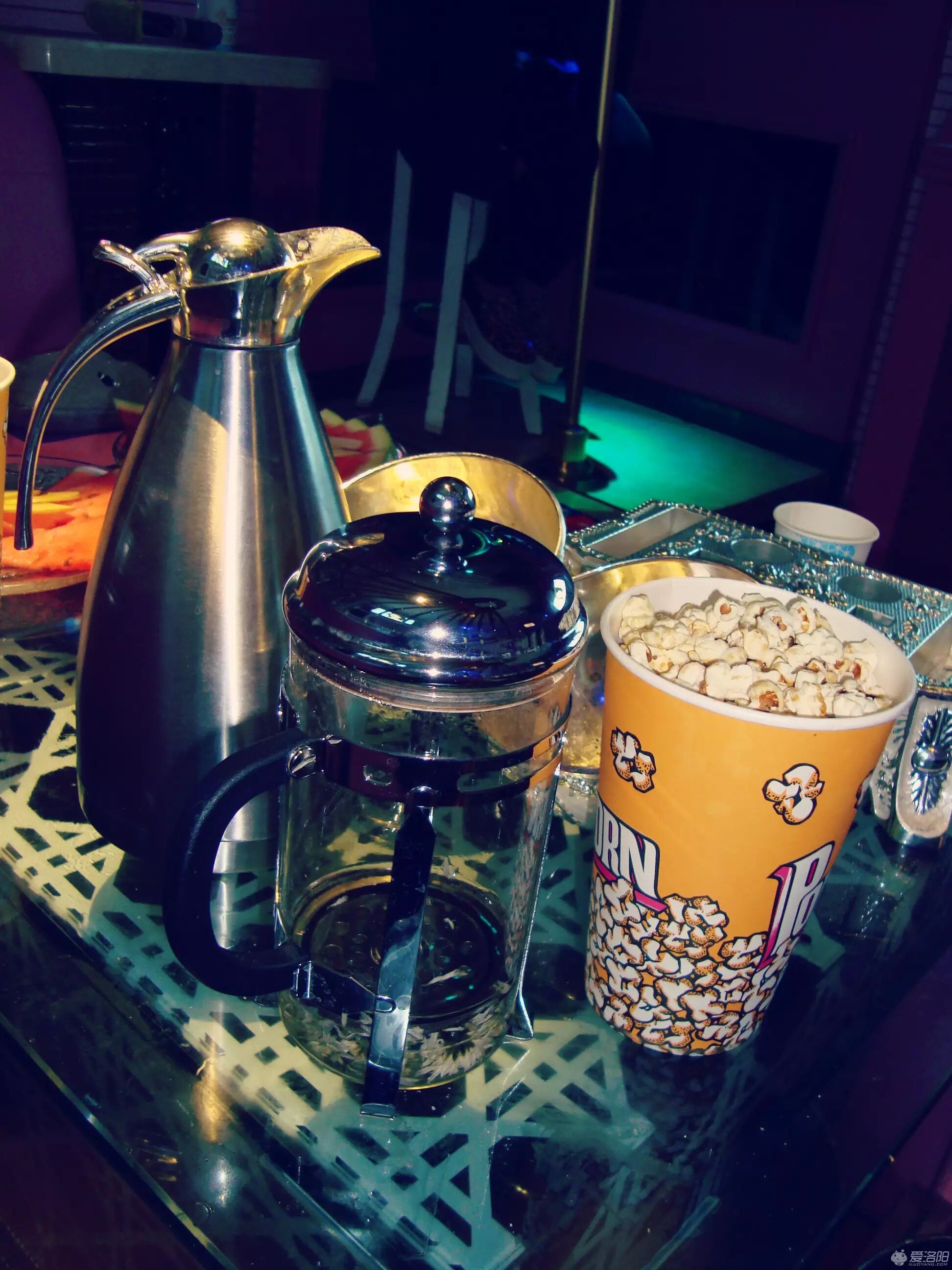 菊花茶和爆米花。