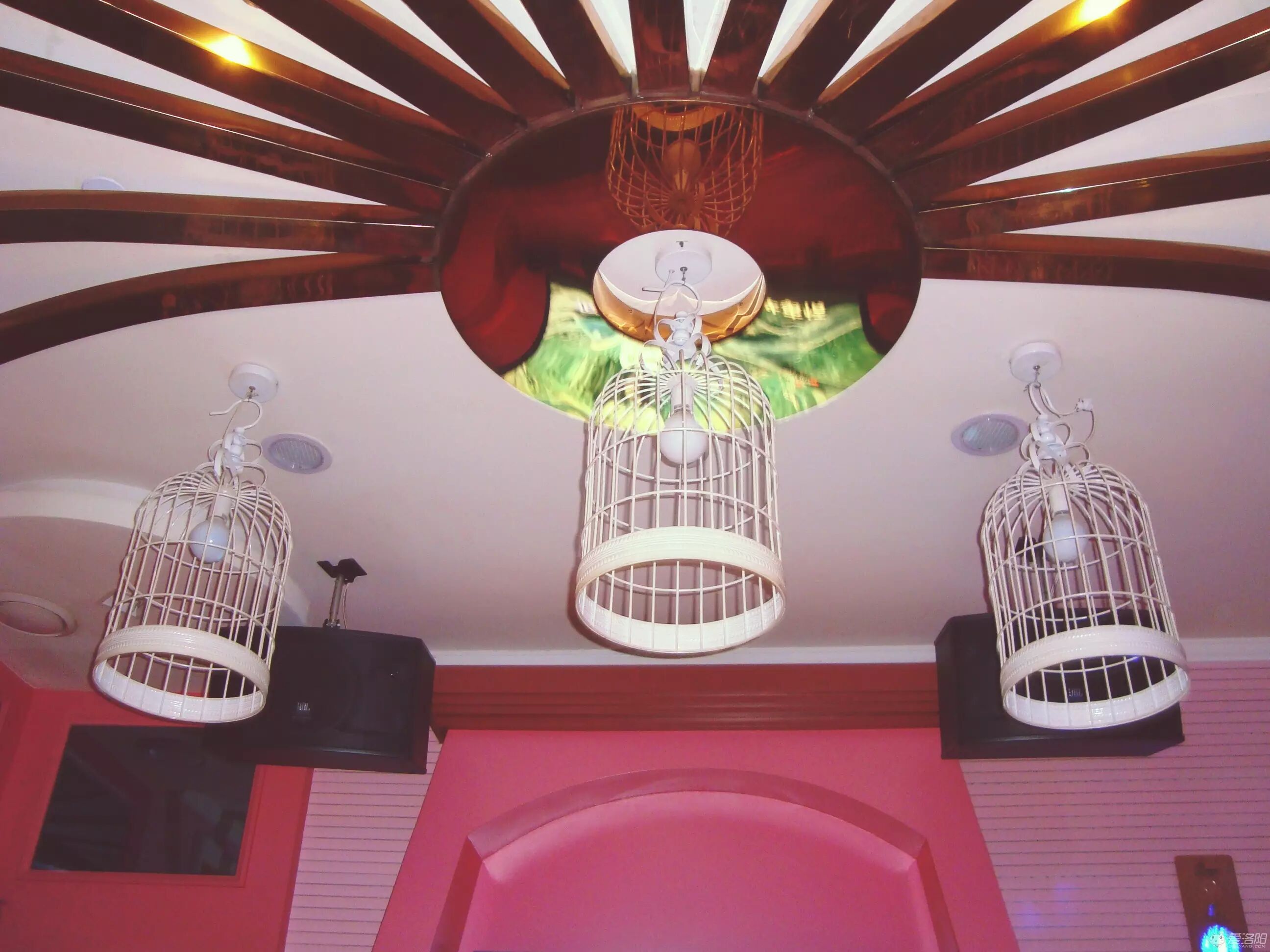 南瓜马车的造型,粉嫩的色彩,白色鸟笼式的吊灯,真的很像辛德瑞拉的马车呢!