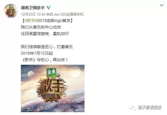 昨天中午,节目组正式发布了新一季节目的最新LOGO,宣布将于1月12日首播。首发歌手也正式确定。