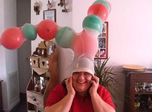 4、我是驯鹿。每个家庭为一组,将吹起的气球套在丝袜内制作驯鹿角,最先戴在头上的家庭为获胜!吹气球和套气球的过程是要父母和孩子共同完成的哦。