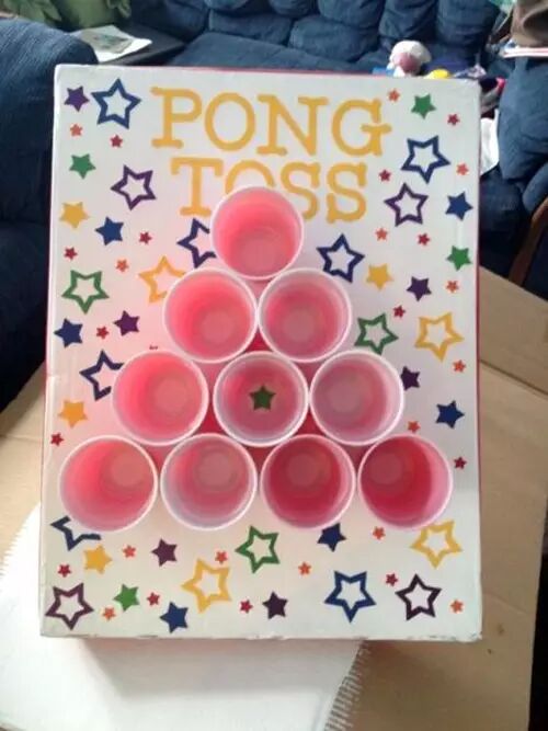 3、侧面投球。将纸杯口想外设置,每个小朋友10个毛球,只要将3个毛球扔进中间的星星纸杯内即可获胜,挑战一下吧!