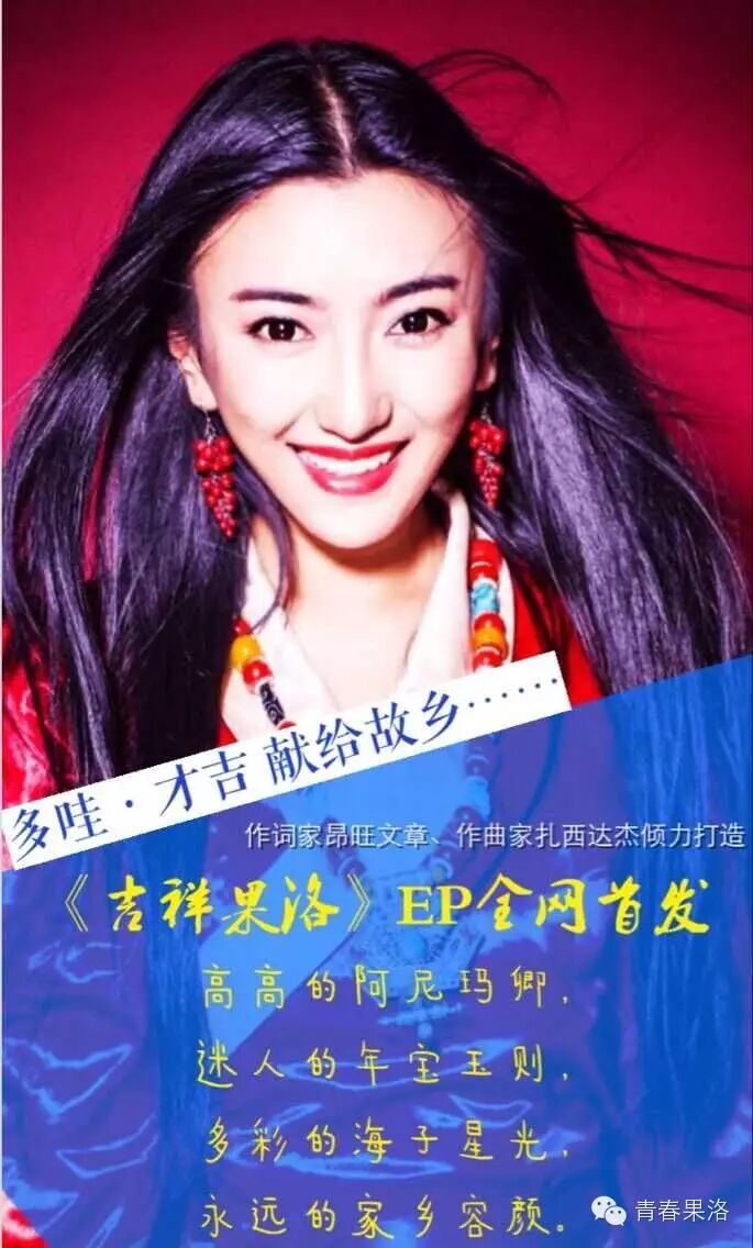 日前,由藏族著名词作家昂旺文章、作曲家扎西达杰联袂打造,知名音乐制作人小磊编曲录音,藏族著名女歌手多哇才吉为家乡果洛倾情献唱的最新单曲《吉祥果洛》全网上线。歌曲中藏族原生态格萨尔说唱融合流行、摇滚等时尚元素,加之多哇才吉清澈唯美、成熟嘹亮的嗓音,使得歌曲即神秘时尚又震撼人心、耐人寻味……歌声响起,这副壮丽风景瞬间映入眼帘,让你放逐心灵,感受不一样的“天赐人间,吉祥果洛。”