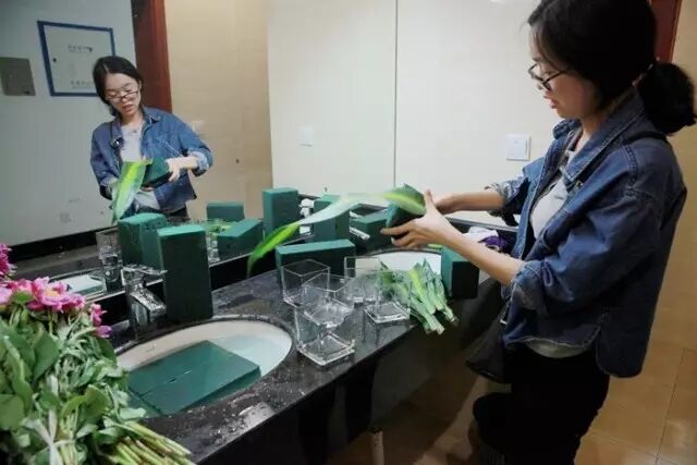 后勤组工作人员忙碌的身影