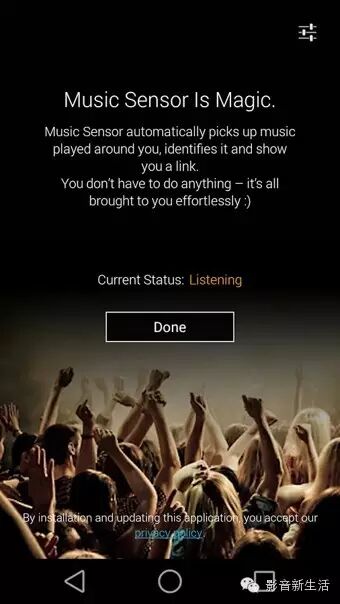 Music Sensor是一种探索音乐的全新方式。不像其他探索和鉴定音乐的程序,音乐感应器将会持续监听你周围的音乐,并在播放音乐时以音乐信息来唤醒手机。你不需要主动聆听或打开专用的应用,音乐感应器将会为你把一切都做好。