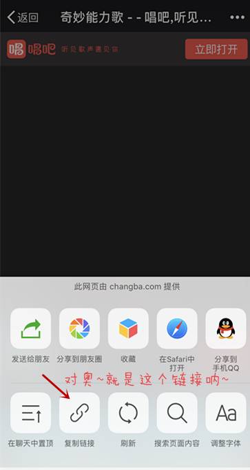 5.将歌曲先分享到第三方,并在第三方平台打开,复制,得到歌曲链接