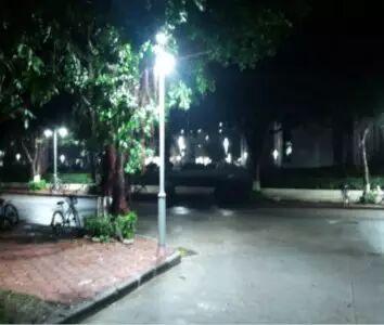 校园晚间的灯光照明情况不是很理想。有些路灯坏了却没有被及时更换,有些路灯已经发黄陈旧。