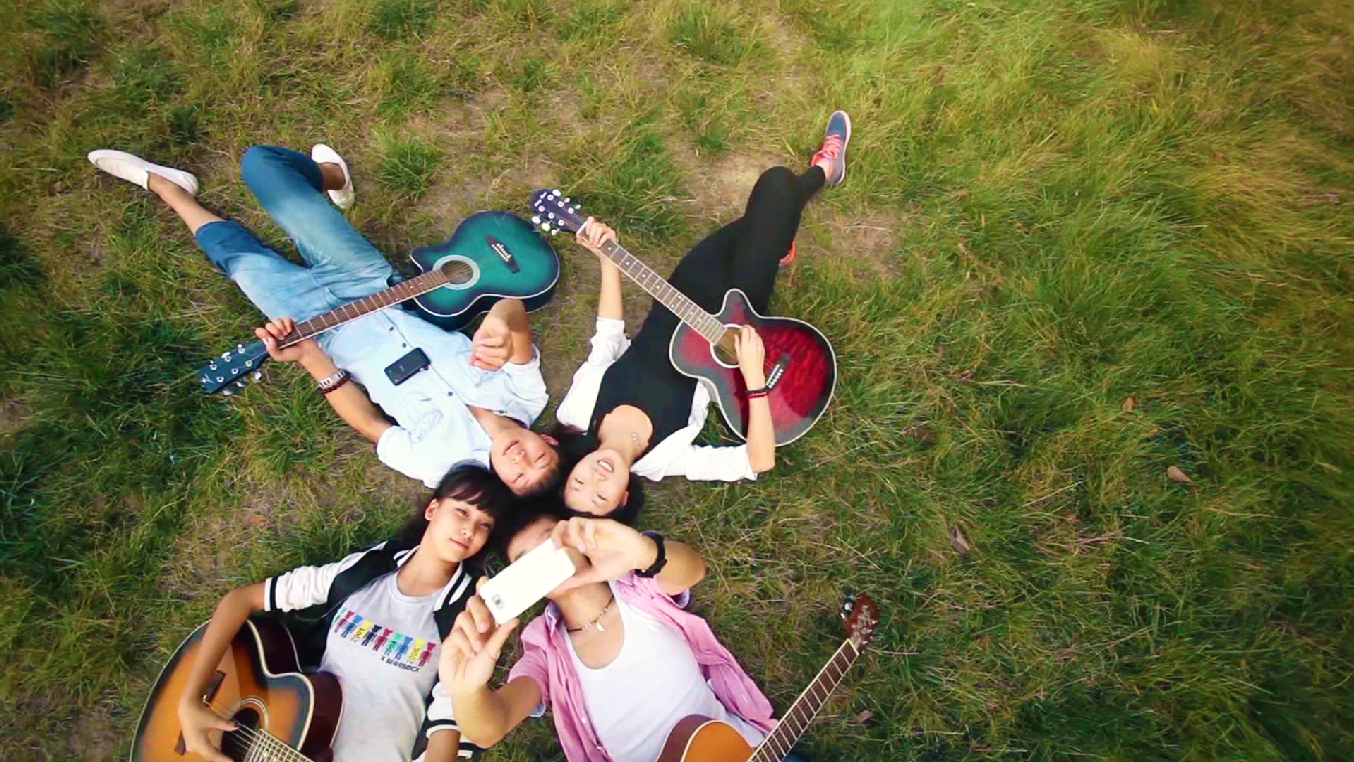 那么,我们仰躺在运动场宽广的草地上,用手机拍出我们最甜蜜的那一刻。