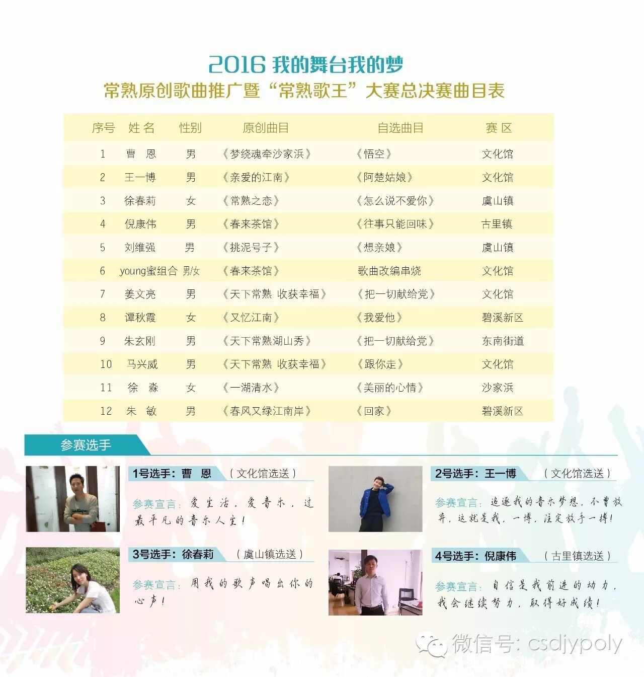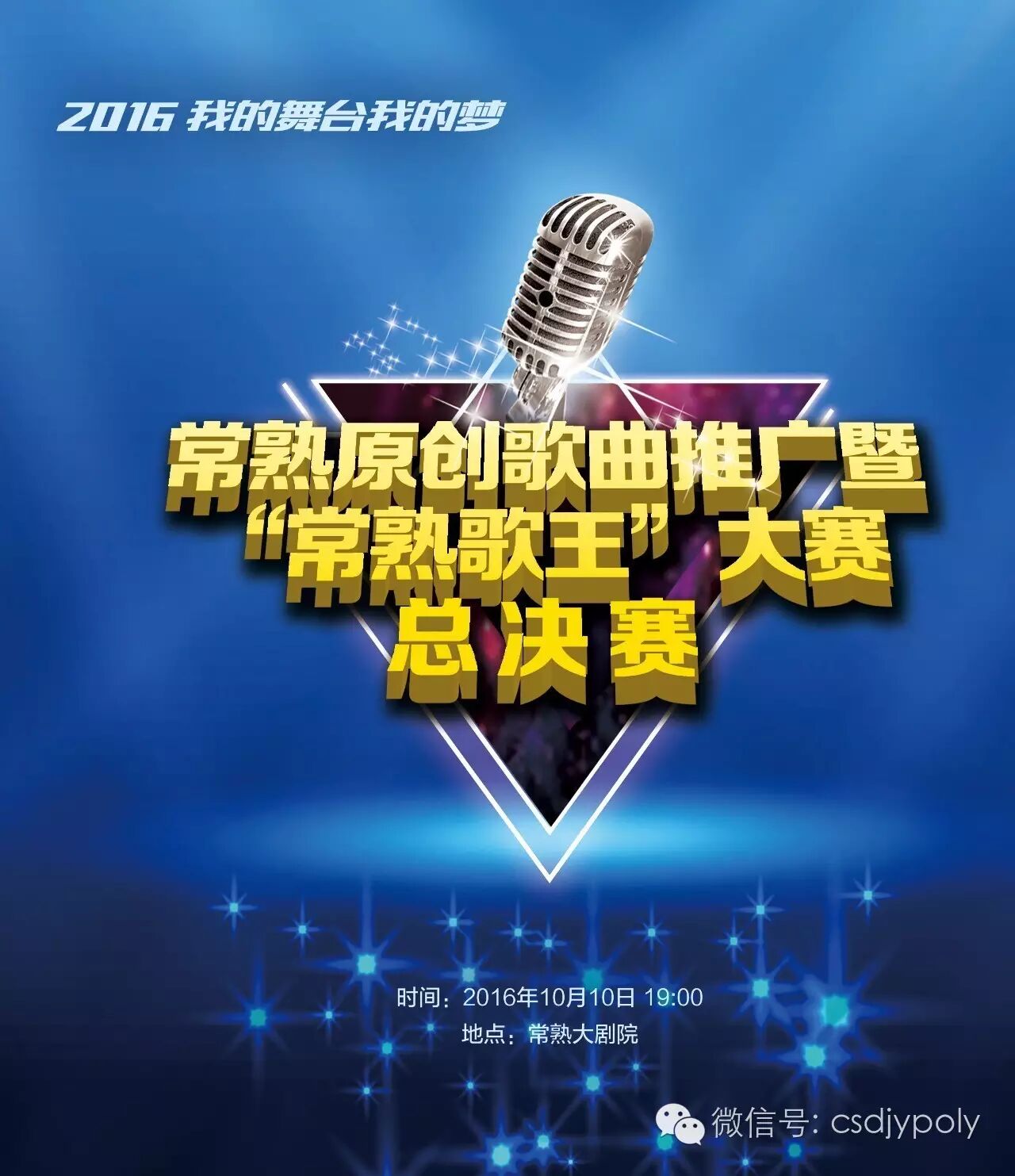 2016“我的舞台我的梦”常熟原创歌曲推广暨“常熟歌王”大赛总决赛将于10月10日晚,在常熟大剧院荣耀登场。
