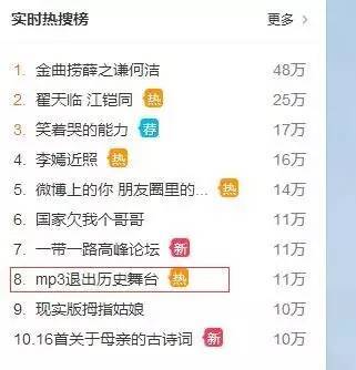 凭借着这股怀旧的力量,“MP3退出历史舞台”这个话题还上了微博热搜榜。