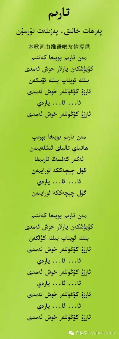 维语吧还为大家提供了歌曲的完整版歌词: