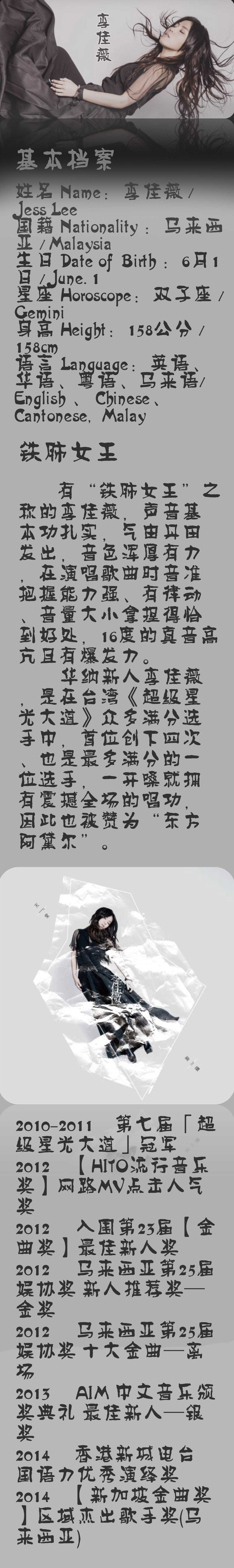 绝密档案《我是歌手》李佳薇的出现可谓万众瞩目。虽然对于内地观众来说,“李佳薇”这个名字并不十分为人熟知,但在圈内专业人士的眼里,李佳薇可谓歌坛新秀中不可忽视的一抹亮色。
