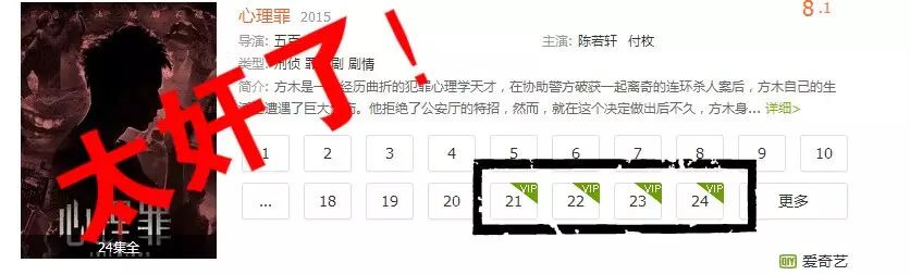 对此,嘟哥不得不佩服啊!爱奇艺可老奸了,《盗墓笔记》收费从第6集开始的,心理罪收费是从21集开始的,追剧的人等更新都急完了!剩个结尾你给我收费了!行!你狠!我买!就这么地,网剧收费就开始了……