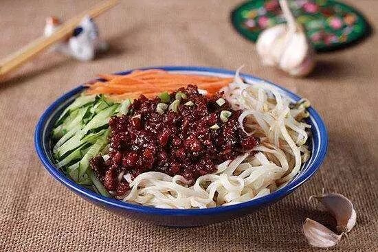 炸酱面是老北京文化的代表,菜码讲究黄瓜、香椿、豆芽、青豆、黄豆等等。夏天来碗炸酱面就着蒜,酱香味浓,滑润爽口,这是北京人夏天的味道。