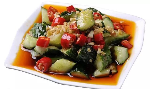 老北京人吃黄瓜不是切着吃,是拍着吃的。拍黄瓜时把黄瓜放案板上,菜刀横过来从黄瓜上拍过,三两下,黄瓜纵列开,露出里面白色的籽儿,再顶刀切成寸段儿,放瓷盆里撒上稍多的食盐腌上十几分钟,既入味儿,又保持了黄瓜的爽脆劲儿。