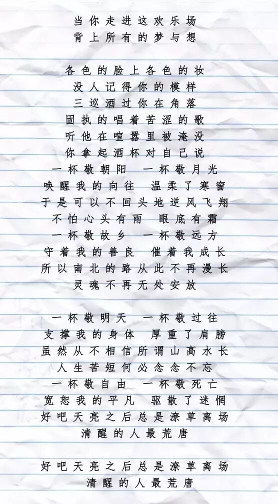 这首《消愁》里满是熟悉的煽情字眼,爱情、理想、诗与远方;自由、成长、痛和欲望。这些元素融进简单的调调里,唱得人不自觉的叹服。