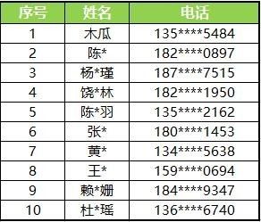 小编随机抽取10个号码,每个号码送出2张票