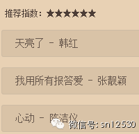 4、小编排名:韩红-张靓颖-陈洁仪-A-Lin -孙楠-古巨基-胡彦斌